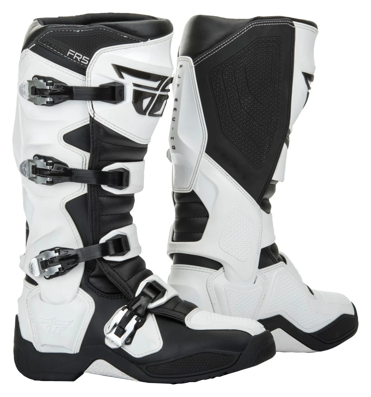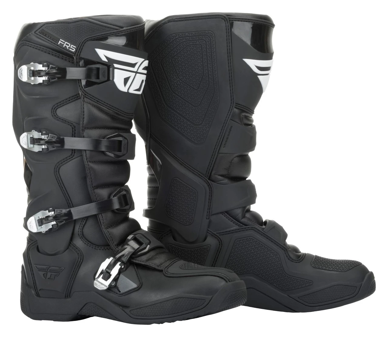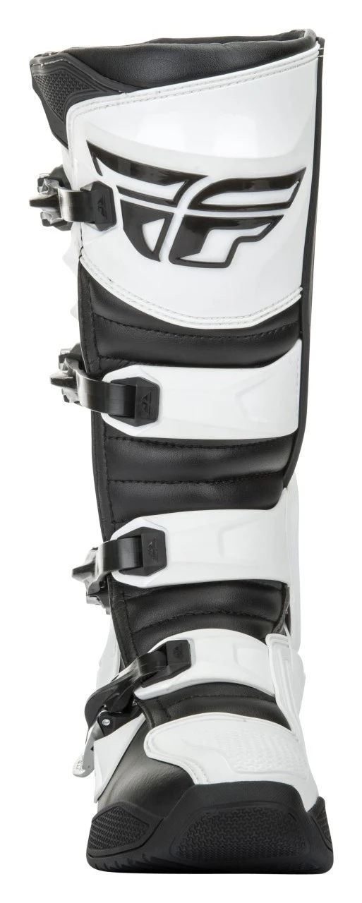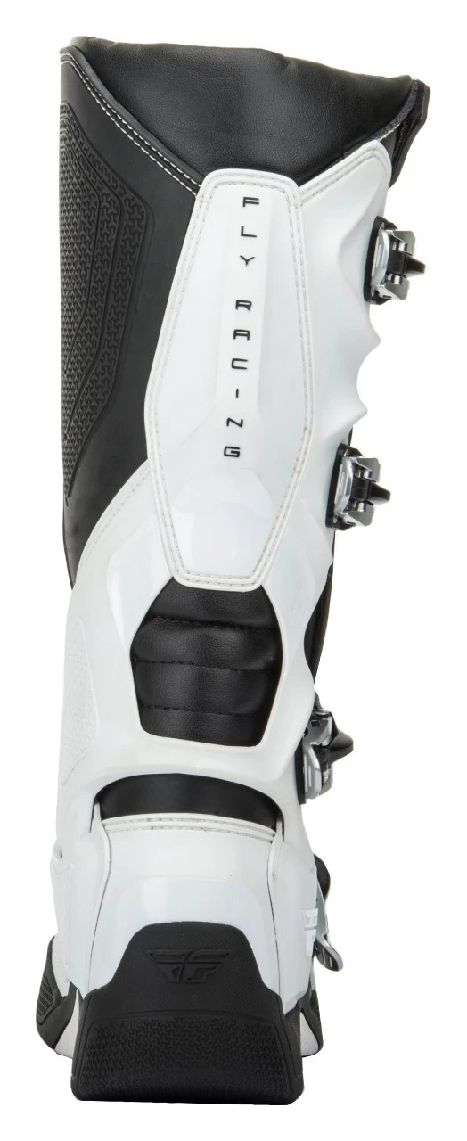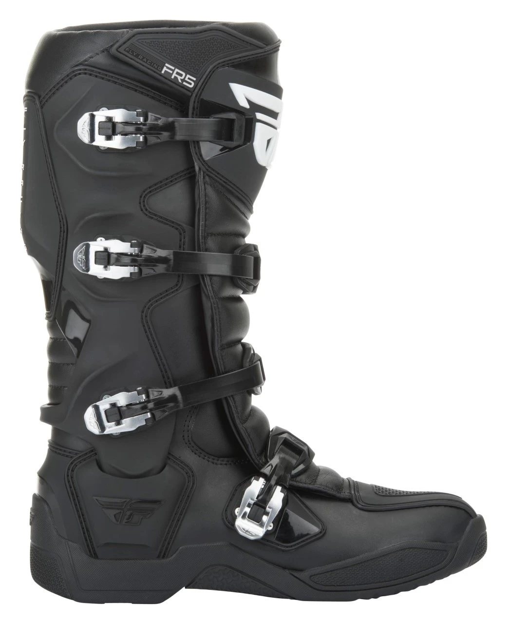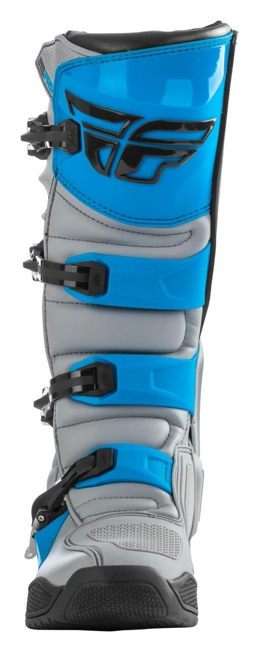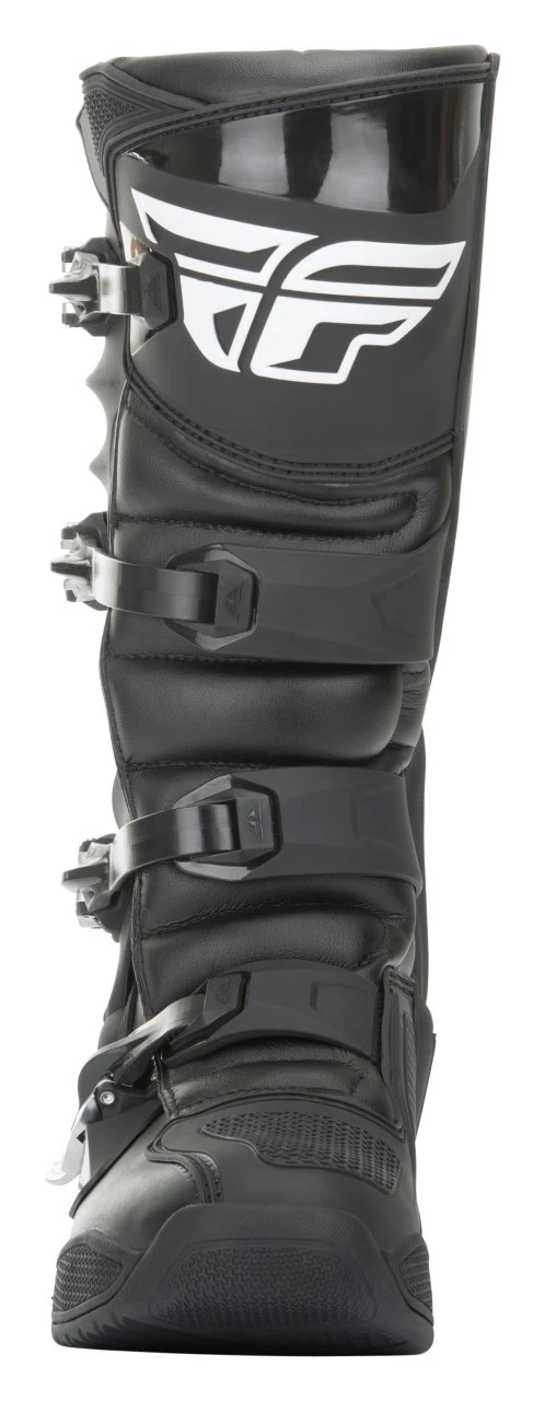 The Fly Racing Dirt FR5 Boots are the next step in protection from Fly Racing. The FR5 Boots provide full coverage thanks to the TPU (thermoplastic polyurethane) heel piece which connects lateral and medial TPU pieces, as well as the contoured TPU calf plate. Additionally, they employ a brand new 4-stage high-grip sole design that is ready to race your stiffest competition. Stage one is a perforated plush insole resting above the innovative second stage, an injected midsole with a unique fishbone design which is lightweight yet incredibly strong. The durable mid-sole is then further enhanced by the addition of a rigid in-mold flex reducing steel shank. Stage three is a fishbone foam layer designed to transfer shock and vibration which is then encased in the final stage, an anti-vibration molded traction sole.