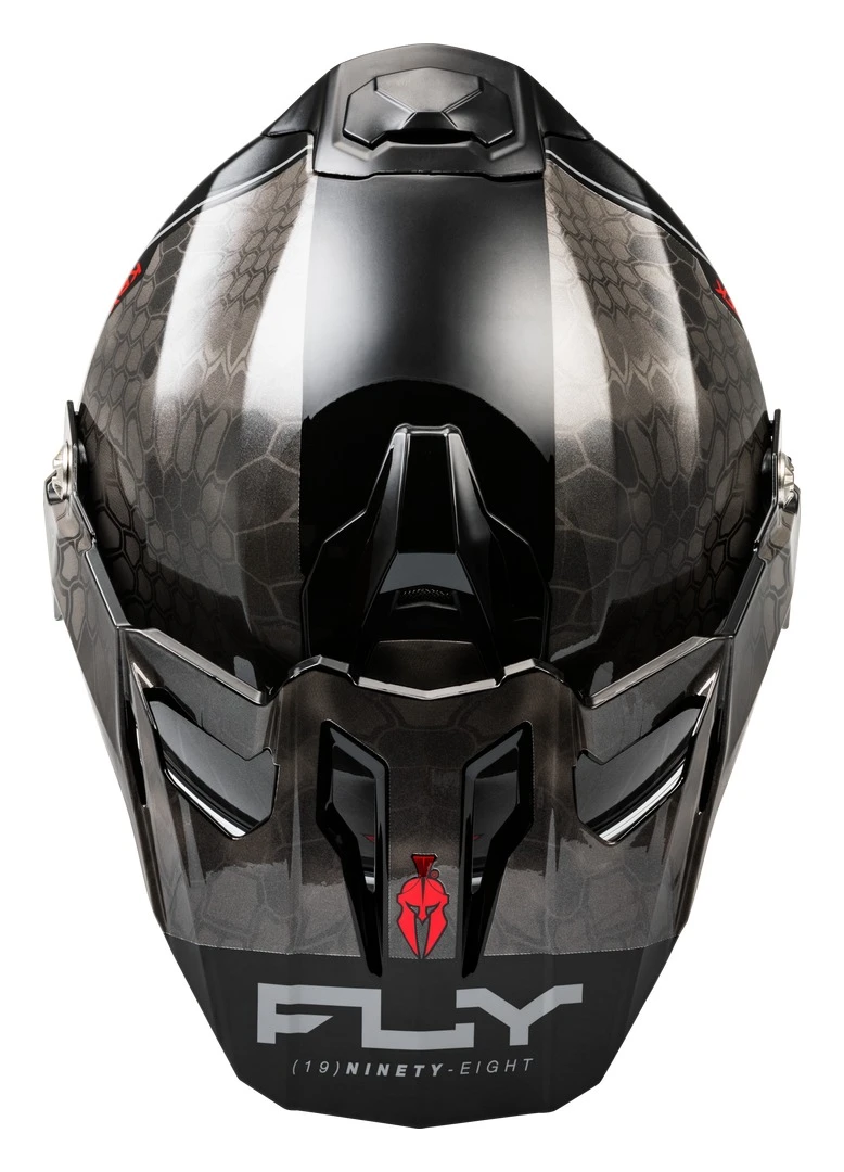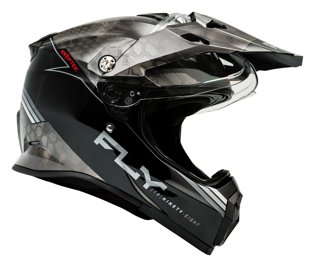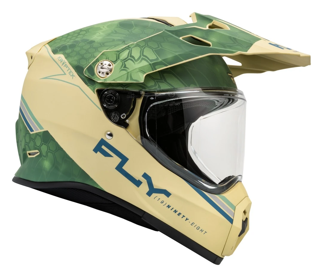 The Fly Racing Dirt Trekker Kryptek Conceal Helmet is a versatile and safety-conscious choice for off-road enthusiasts. This helmet is ECE/DOT approved and features a durable yet lightweight polymer shell, offering protection without sacrificing comfort. Its dual-density EPS liner provides progressive impact absorption, while the optically superior clear face shield with anti-fog and scratch-resistant coatings ensures clear visibility. Additionally, the helmet offers a drop-down sunshade, integrated ventilation, and a removable, washable antimicrobial SpaSoftโข interior for a custom fit. It also includes a soft fleece helmet bag for convenient storage and protection