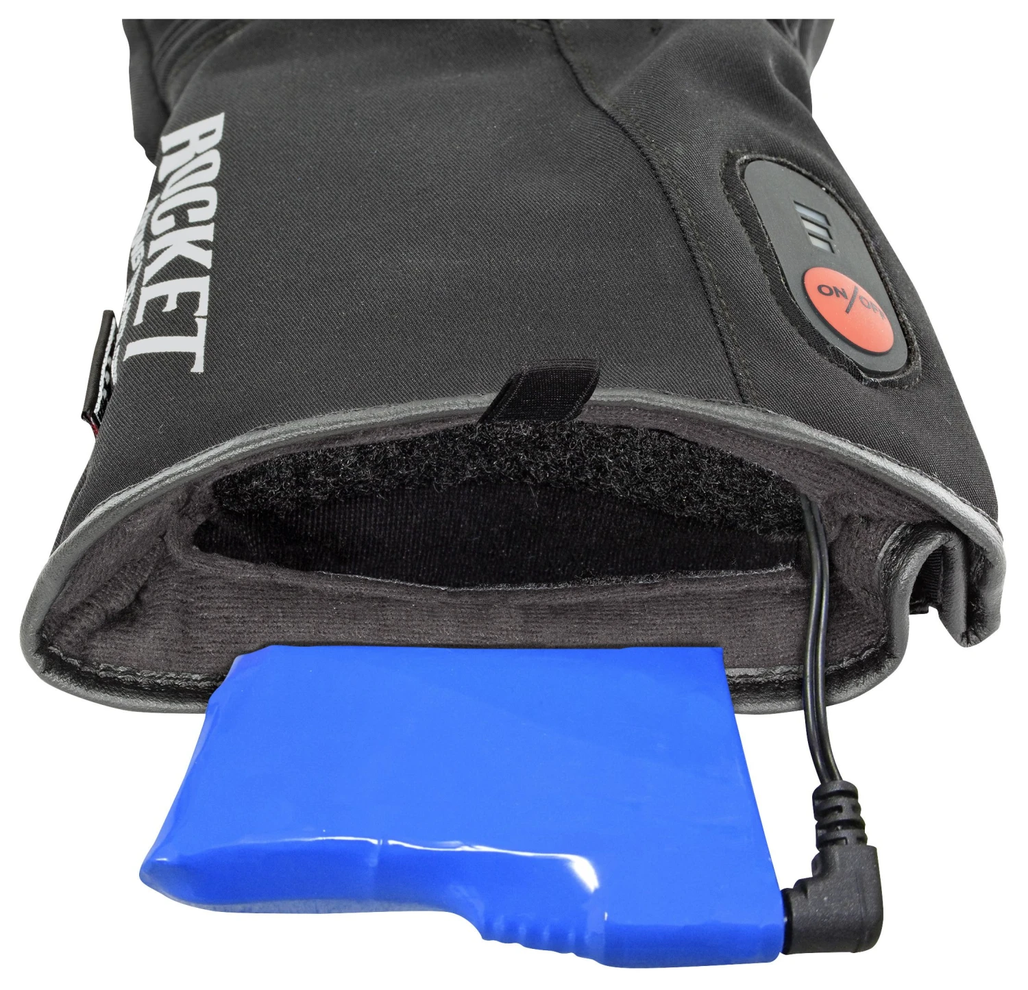 - Batteries stow away comfortably in a pocket under the wrist area