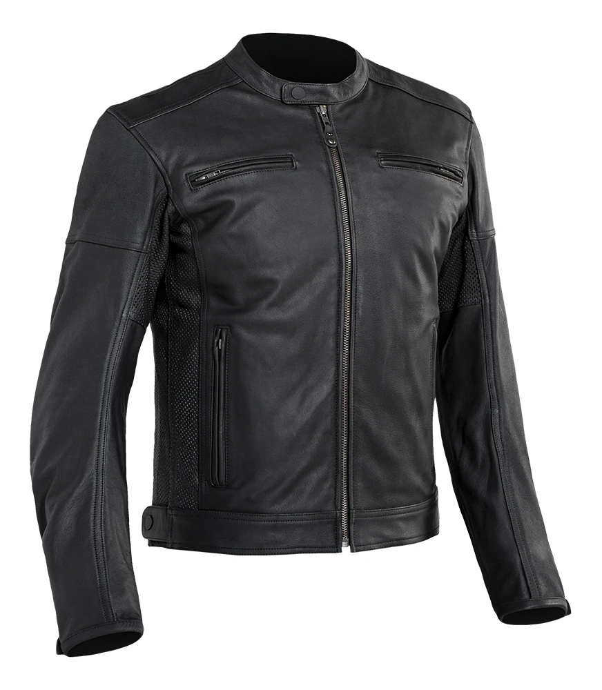 With the contours of a classic mandarin collar motorcycle jacket, the Street & Steel Blade Leather Jacket is made out of natural drum dyed leather with extra perforation at the sides of the torso for extra breathability. CE rated protectors at the shoulders and elbows come stock from the factory with the option to add in a back protector (sold separately) into the rear pocket. Adjustments at the waist help with fit, while internal pockets let you pack your CCW and extra ammo.ย